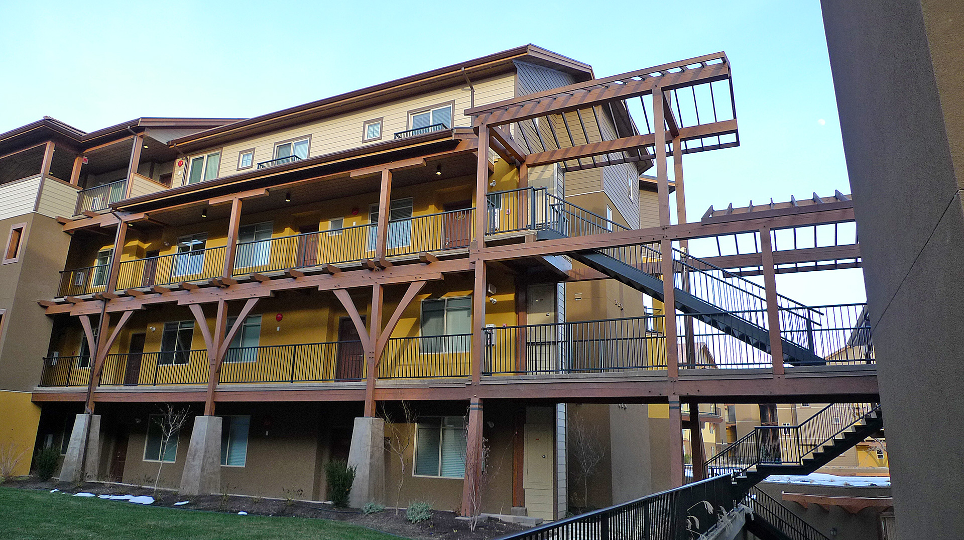 One of the challenges we worked with early in this project was the seamless melding of the timber frames to the stick framed main buildings, which would settle. Timber frames don’t settle; they retain their original height. Load transfer and stability were an especially important focus at stick-to-timber-frame transitions, and the end product was a great success.